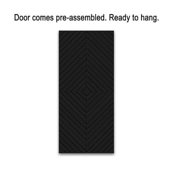 Diamond 42 in. x 96 in. Fully Assembled Black Painted MDF Modern Sliding Barn Door with Hardware Kit