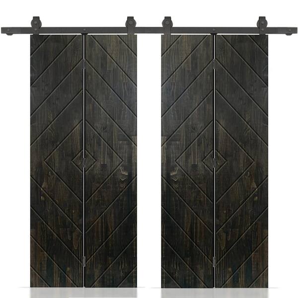Diamond 56 in. x 84 in. Charcoal Black Stained Hollow Core Pine Wood Double Bi-Fold Door with Sliding Hardware Kit