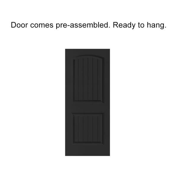 Elegant 36 in. x 80 in. Black Stained Composite MDF 2 Panel Camber Top Sliding Barn Door with Hardware Kit