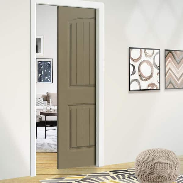 Elegant Series 30 in. x 80 in. Olive Green Stained Composite MDF 2 Panel Camber Top Interior Door Slab For Pocket Door