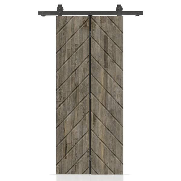 Herringbone 22 in. x 80 in. Weather Gray Stained Hollow Core Pine Wood Bi-fold Door with Sliding Hardware Kit