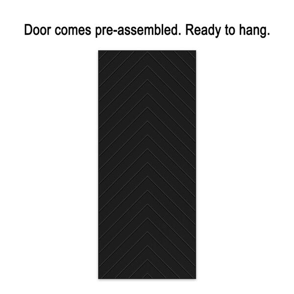Herringbone 24 in. x 80 in. Fully Assembled Black Painted MDF Modern Sliding Barn Door with Hardware Kit