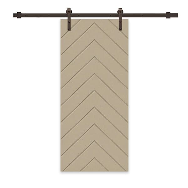 Herringbone 24 in. x 80 in. Fully Assembled Unfinished MDF Modern Sliding Barn Door with Hardware Kit