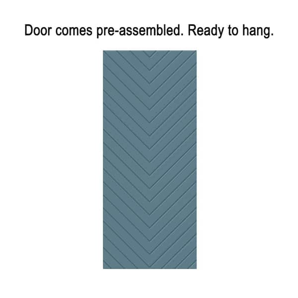 Herringbone 24 in. x 84 in. Fully Assembled Dignity Blue Painted MDF Modern Sliding Barn Door with Hardware Kit