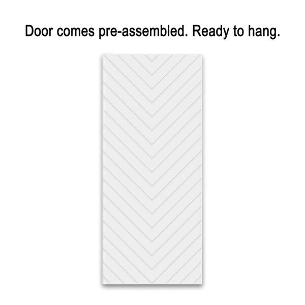 Herringbone 24 in. x 84 in. Fully Assembled White Painted MDF Modern Sliding Barn Door with Hardware Kit