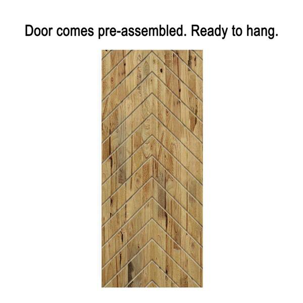 Herringbone 30 in. x 80 in. Fully Assembled Weather Oak Stained Wood Modern Sliding Barn Door with Hardware Kit