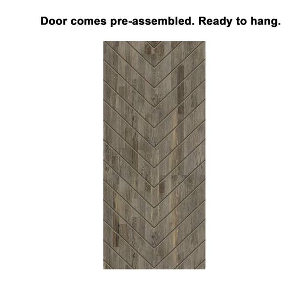 Herringbone 30 in. x 84 in. Fully Assembled Weather Gray Stained Wood Modern Sliding Barn Door with Hardware Kit