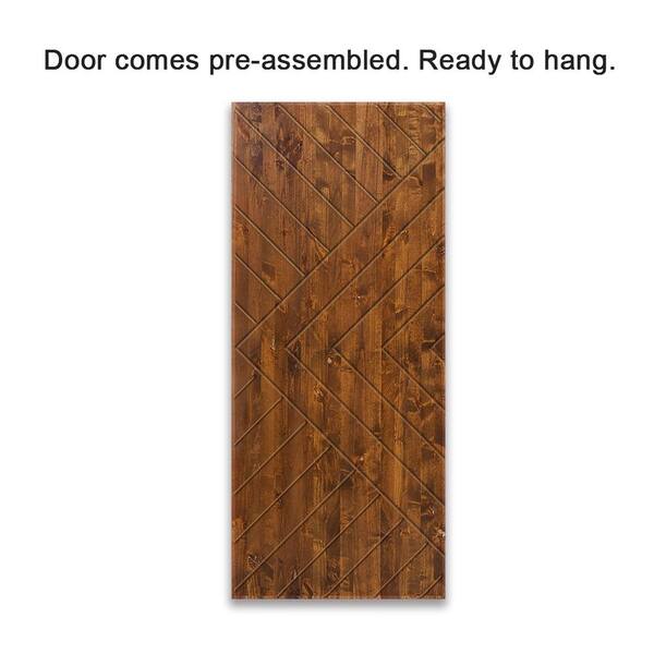 Herringbone 30 in. x 96 in. Fully Assembled Solid Core Walnut Stained Wood Modern Sliding Barn Door with Hardware Kit