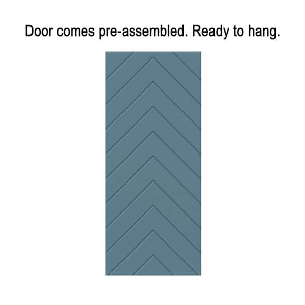 Herringbone 36 in. x 84 in. Fully Assembled Dignity Blue Painted MDF Modern Sliding Barn Door with Hardware Kit