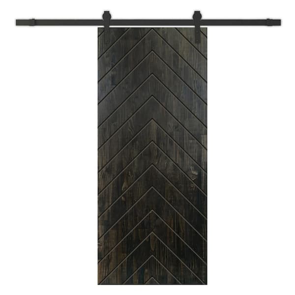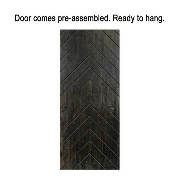 Herringbone 36 in. x 96 in. Fully Assembled Charcoal Black Stained Wood Modern Sliding Barn Door with Hardware Kit