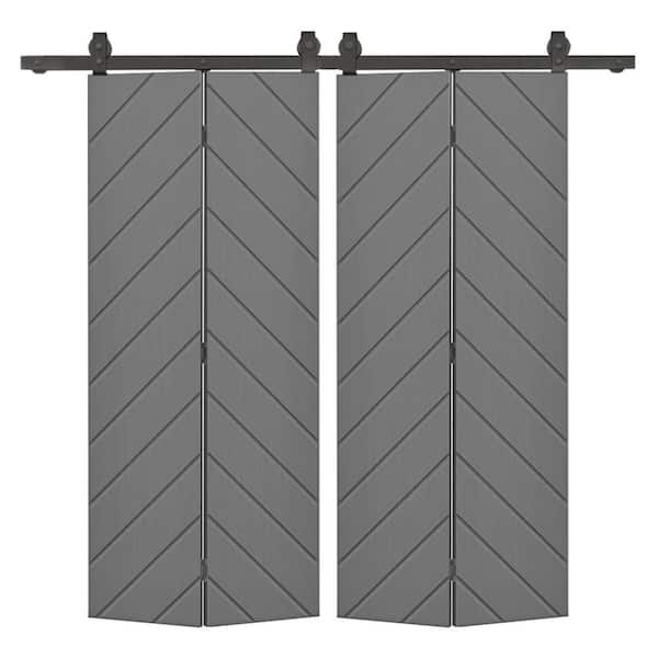Herringbone 40 in. x 80 in. Light Gray Painted MDF Modern Bi-Fold Double Barn Door with Sliding Hardware Kit