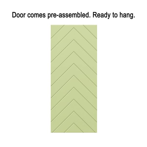 Herringbone 42 in. x 84 in. Fully Assembled Sage Green Stained MDF Modern Sliding Barn Door with Hardware Kit