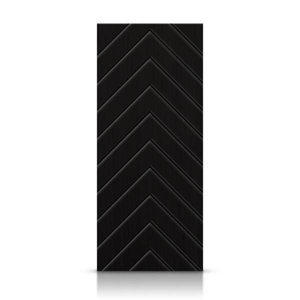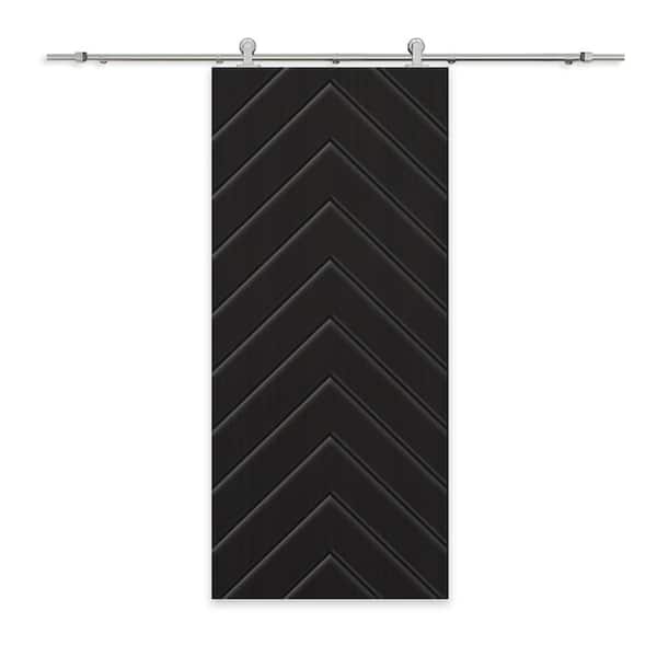 Herringbone 42 in. x 96 in. Fully Assembled Black Painted MDF Modern Sliding Barn Door with Hardware Kit