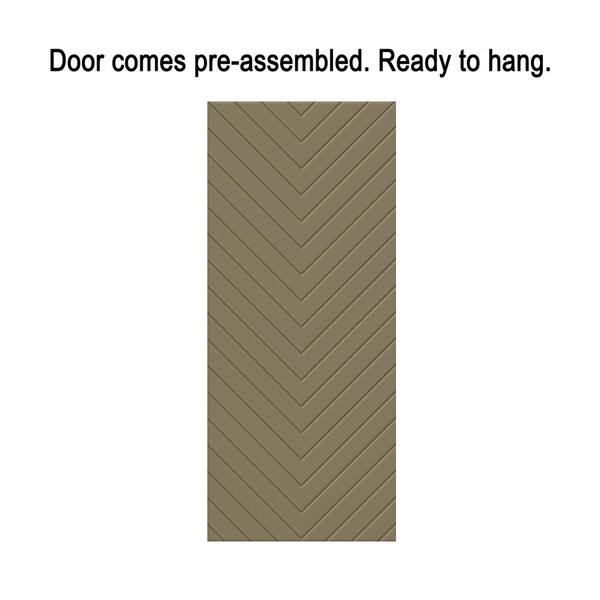 Herringbone 42 in. x 96 in. Fully Assembled Olive Green Painted MDF Modern Sliding Barn Door with Hardware Kit