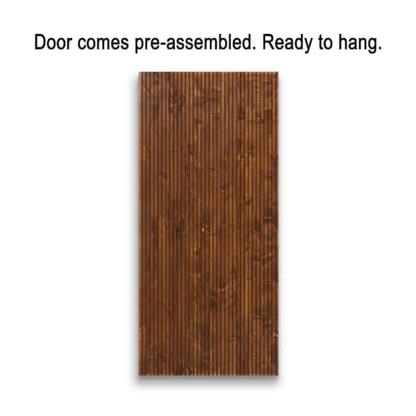 Japanese 30 in. x 96 in. Pre Assemble Walnut Stained Wood Interior Sliding Barn Door with Hardware Kit