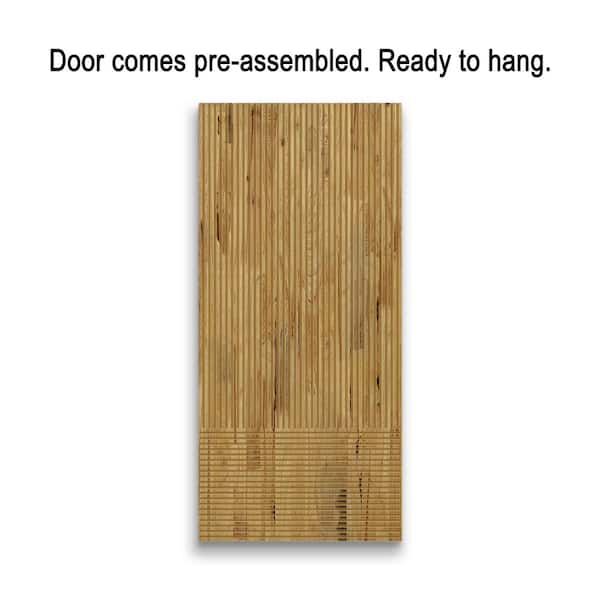 Japanese 36 in. x 80 in. Pre Assemble Weather Oak Stained Wood Interior Sliding Barn Door with Hardware Kit