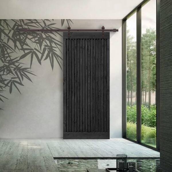 Japenese 36 in. x 84 in. Pre Assemble Black Stained Wood Interior Sliding Barn Door with Hardware Kit