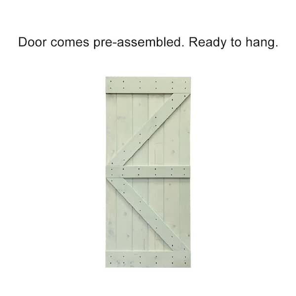 K Series 30 in. x 84 in. Pre Assembled Sage Green Stained Solid Pine Wood Interior Sliding Barn Door Slab