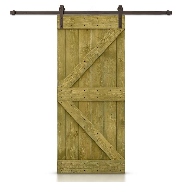 K Series 34 in. x 84 in. Jungle Green Stained DIY Knotty Pine Wood Interior Sliding Barn Door with Hardware Kit