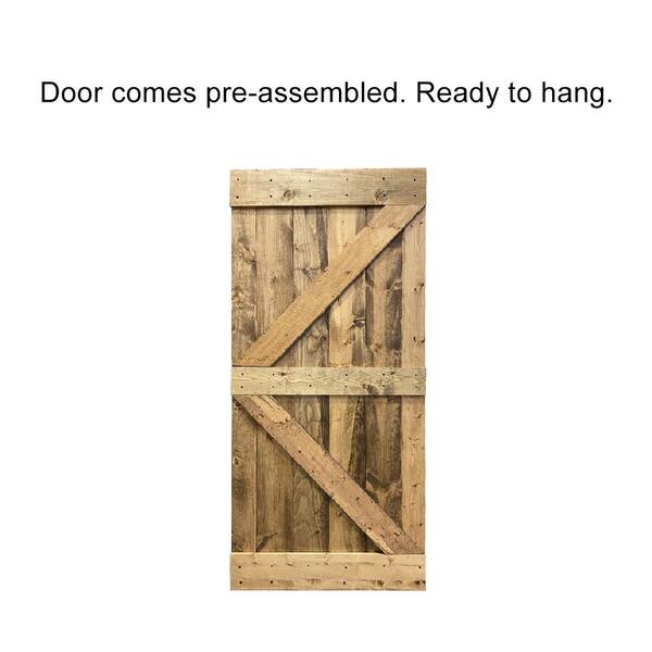 K Series 42 in. x 84 in. Pre-Assembled Weather Oak Stained Wood Interior Sliding Barn Door with Hardware Kit