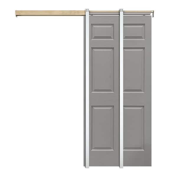 Light Gray 30 in. x 80 in. Painted Composite MDF 6PANEL Interior Sliding Door with Pocket Door Frame and Hardware Kit