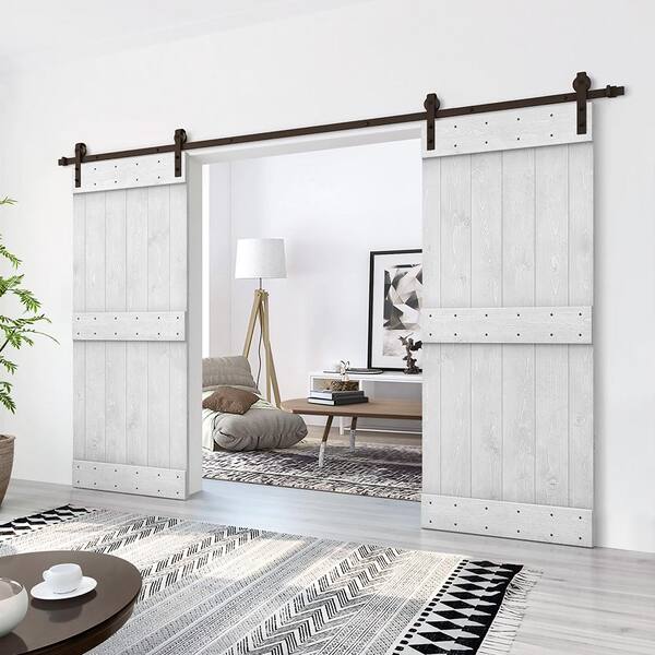 Mid-Bar 68 in. x 84 in. White Stained DIY Solid Pine Wood Interior Double Sliding Barn Door with Hardware Kit