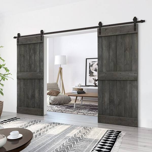 Mid-Bar 72 in. x 84 in. Carbon Gray Stained DIY Solid Pine Wood Interior Double Sliding Barn Door with Hardware Kit