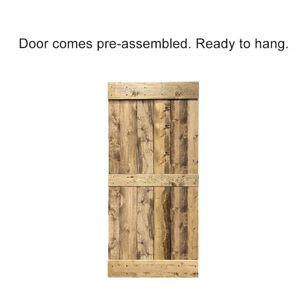 Mid-bar Series 30 in. x 84 in. Pre-Assembled Weather Oak Stained Wood Interior Sliding Barn Door with Hardware Kit