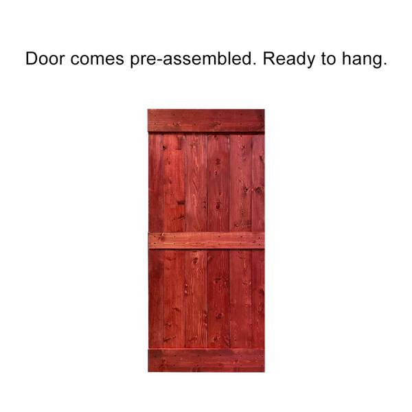 Mid-bar Series 36 in. x 84 in. Pre-Assembled Cherry Red Stained Wood Interior Sliding Barn Door with Hardware Kit