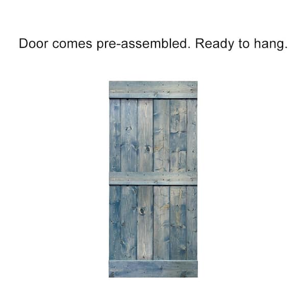 Mid-bar Series 36 in. x 84 in. Pre-Assembled Denim Blue Stained Wood Interior Sliding Barn Door with Hardware Kit