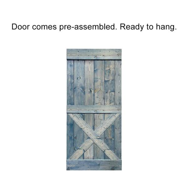 Mini X Series 42 in. x 84 in. Pre-Assembled Denim Blue Stained Wood Interior Sliding Barn Door with Hardware Kit