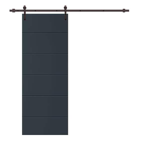 Modern Classic 24 in. x 80 in. Charcoal Gray Stained Composite MDF Paneled Sliding Barn Door with Hardware Kit