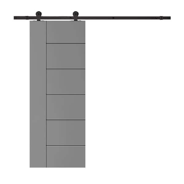 Modern Classic 24 in. x 80 in. Light Gray Stained Composite MDF Paneled Sliding Barn Door with Hardware Kit