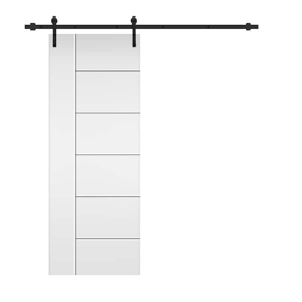 Modern Classic 24 in. x 84 in. White Stained Composite MDF Paneled Sliding Barn Door with Hardware Kit