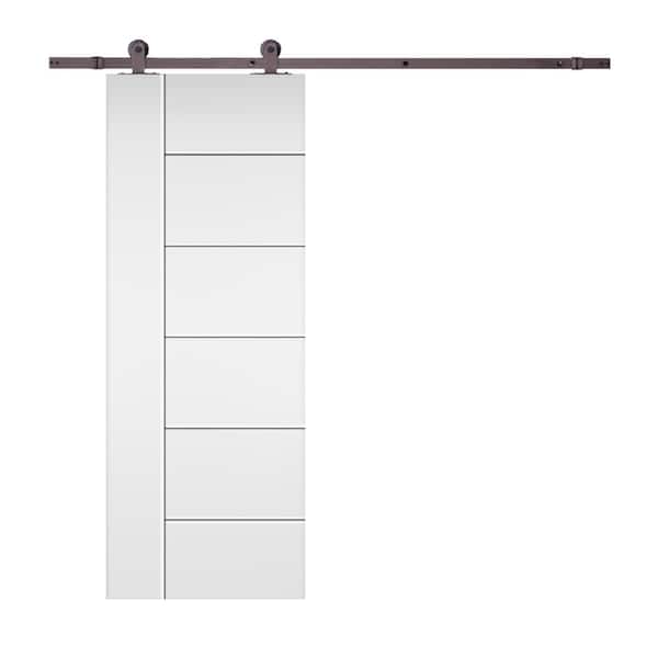 Modern Classic 24 in. x 84 in. White Stained Composite MDF Paneled Sliding Barn Door with Hardware Kit