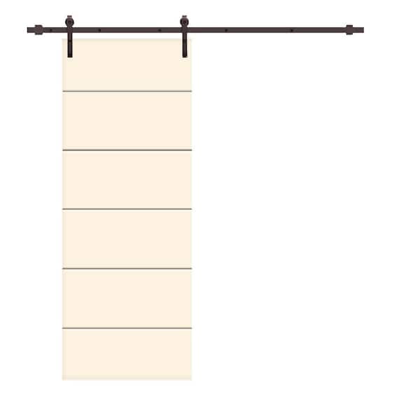 Modern Classic 24 in. x 96 in. Beige Stained Composite MDF Paneled Sliding Barn Door with Hardware Kit