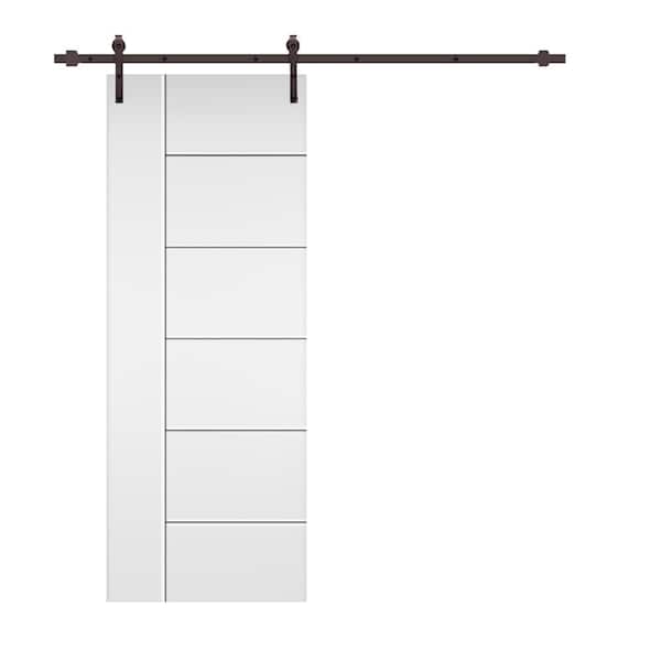 Modern Classic 24 in. x 96 in. White Primed Composite MDF Paneled Sliding Barn Door with Hardware Kit