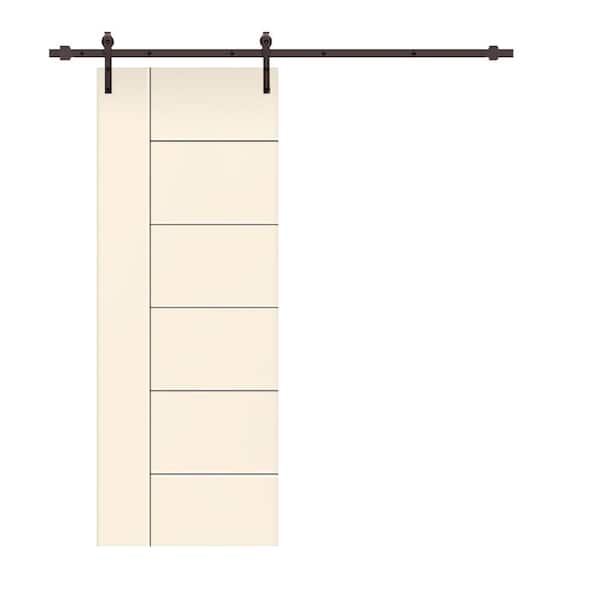 Modern Classic 30 in. x 84 in. Beige Stained Composite MDF Paneled Sliding Barn Door with Hardware Kit