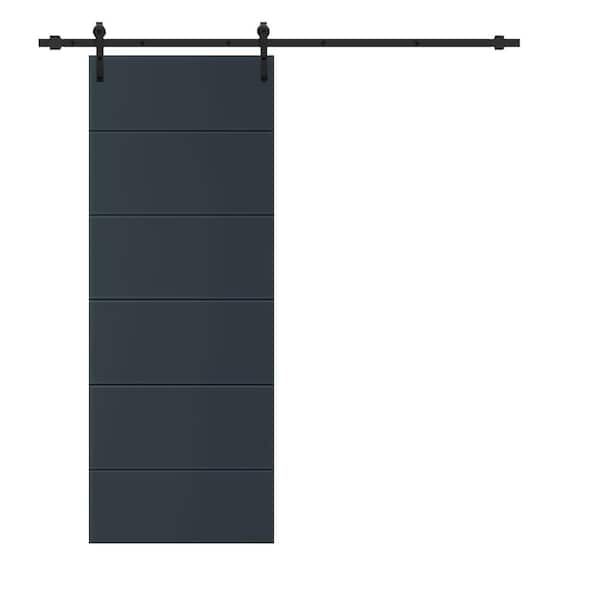 Modern Classic 30 in. x 84 in. Charcoal Gray Stained Composite MDF Paneled Sliding Barn Door with Hardware Kit