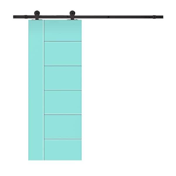 Modern Classic 30 in. x 84 in. Mint Green Stained Composite MDF Paneled Sliding Barn Door with Hardware Kit