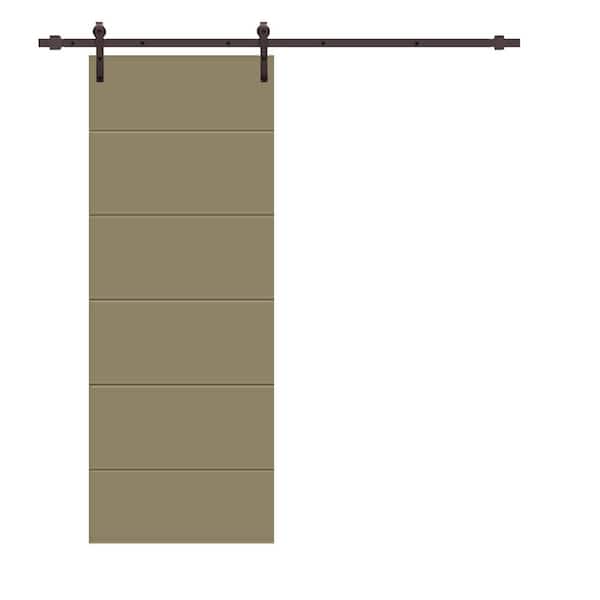 Modern Classic 30 in. x 96 in. Olive Green Stained Composite MDF Paneled Sliding Barn Door with Hardware Kit