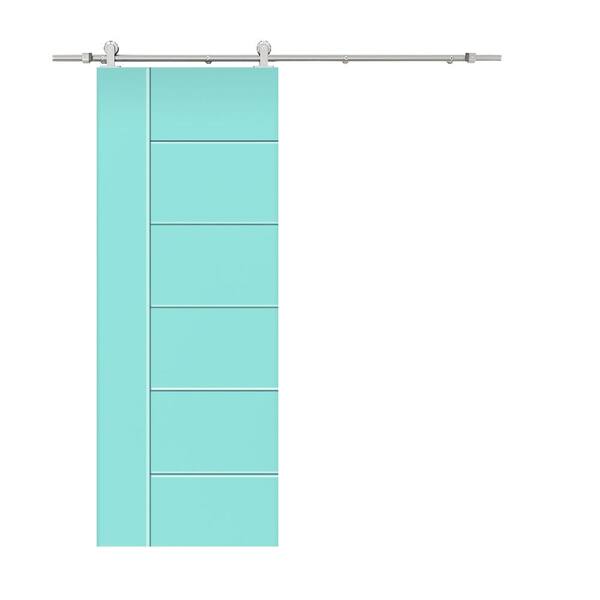 Modern Classic 36 in. x 84 in. Mint Green Stained Composite MDF Paneled Sliding Barn Door with Hardware Kit