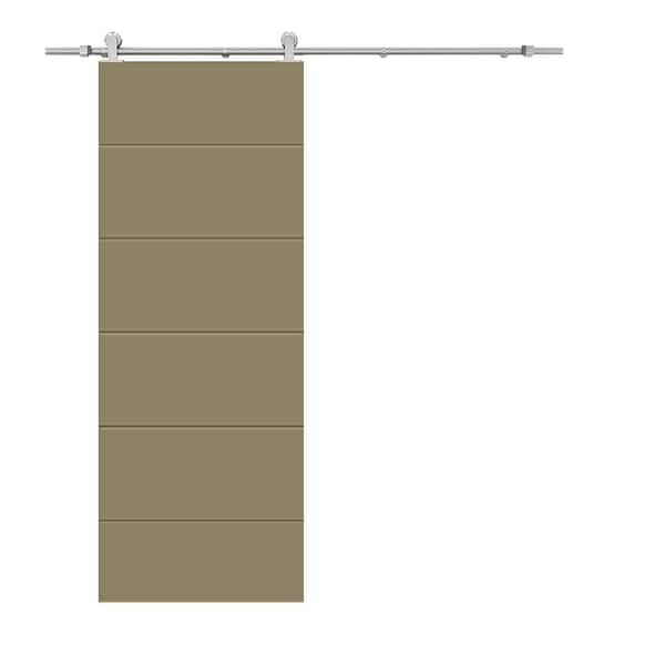 Modern Classic 36 in. x 96 in. Olive Green Stained Composite MDF Paneled Sliding Barn Door with Hardware Kit
