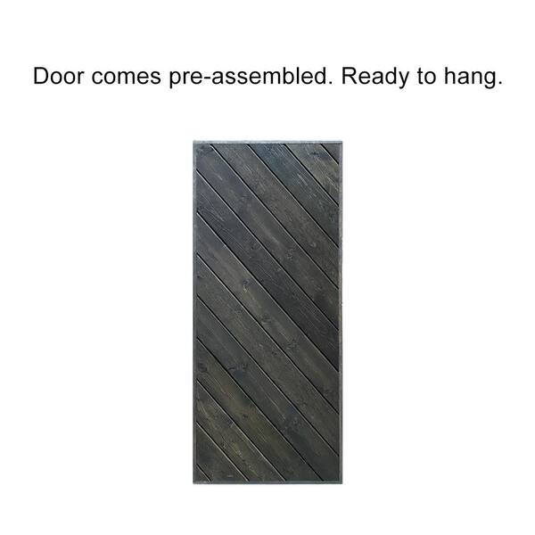 Modern European 30 in. x 84 in. Pre Assembled Gray Stained Solid Wood Sliding Barn Door with Hardware Kit