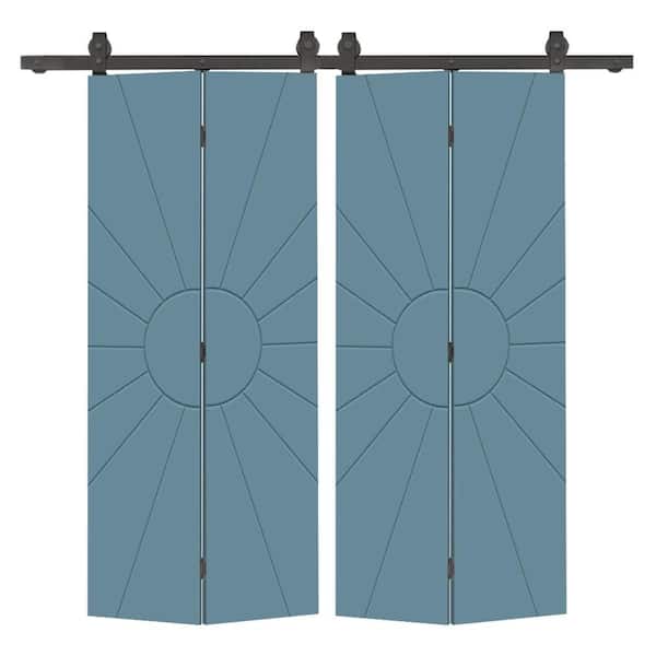 Sun 40 in. x 84 in. Dignity Blue Painted MDF Composite Bi-Fold Hollow Core Double Barn Door with Sliding Hardware Kit