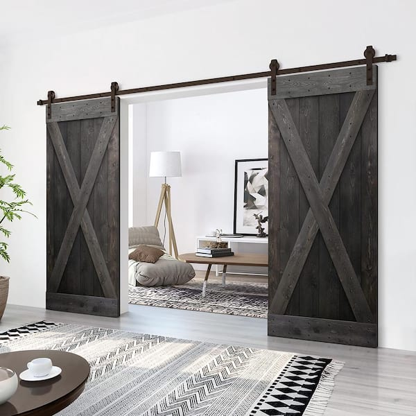 X 40 in. x 84 in. Charcoal Black Stained DIY Solid Pine Wood Interior Double Sliding Barn Door with Hardware Kit