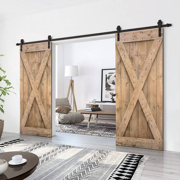 X 52 in. x 84 in. Light Brown Stained DIY Solid Pine Wood Interior Double Sliding Barn Door with Hardware Kit