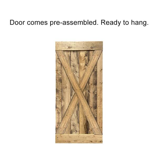 X Series 38 in. x 84 in. Pre-Assembled Weather Oak Stained Wood Interior Sliding Barn Door with Hardware Kit