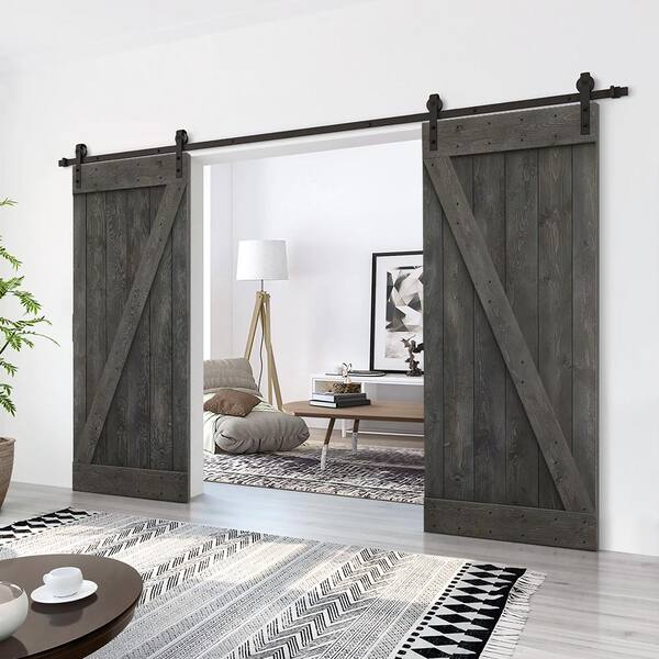 Z 40 in. x 84 in. Bar Series Carbon Gray Stained DIY Solid Pine Wood Interior Double Sliding Barn Door with Hardware Kit