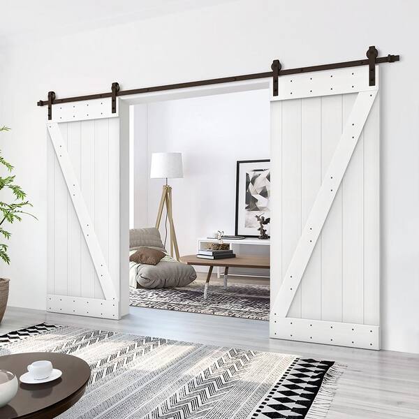 Z 56 in. x 84 in. Bar Pure White Stained DIY Solid Pine Wood Interior Double Sliding Barn Door with Hardware Kit